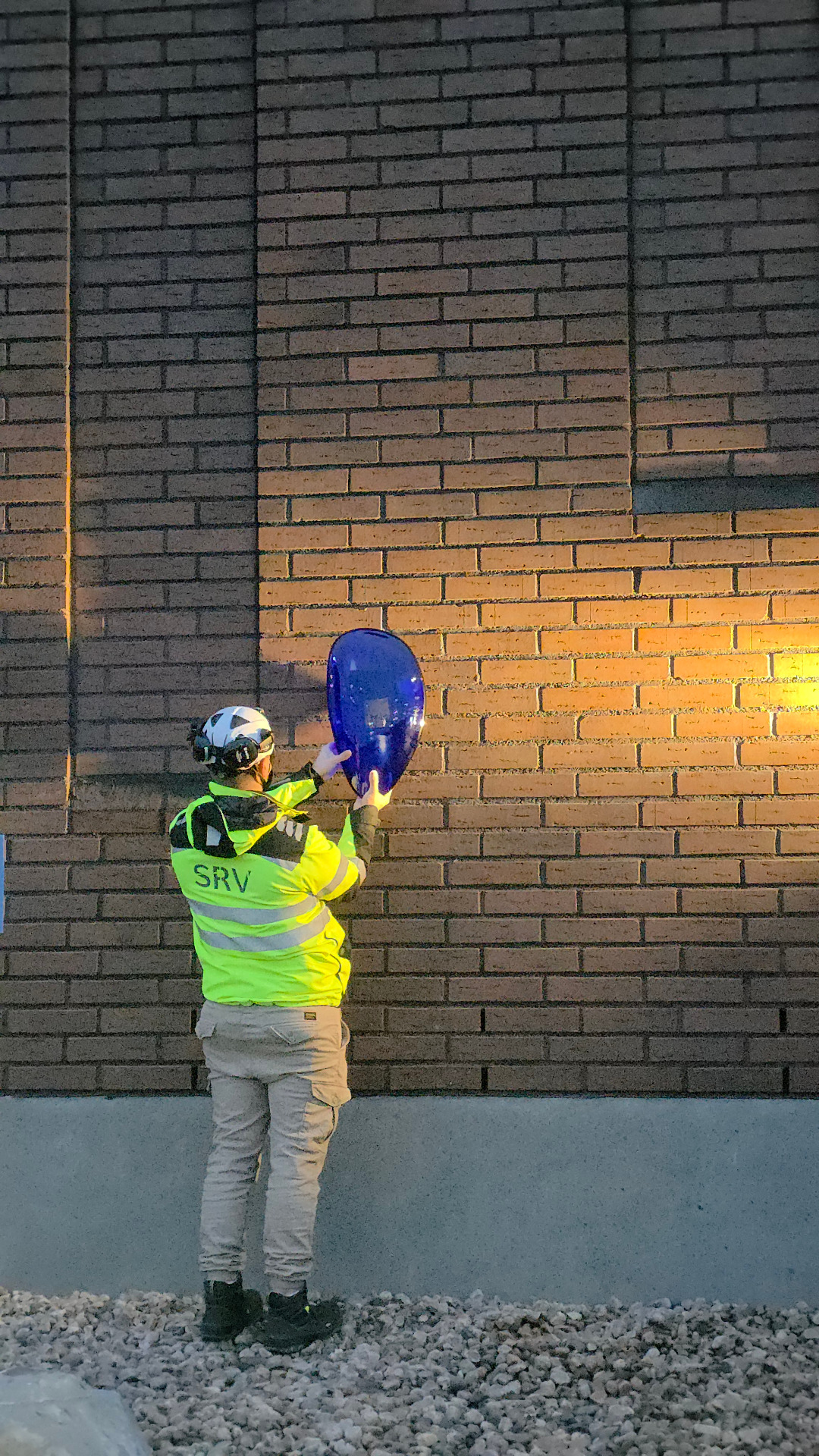First on the checklist was light: how it bends, refracts, and eventually breathes life into the work. Light is the translator between material and meaning. With SRV's help, a lift carried the team up to the roofline to see how illumination and artwork size to play along the façade.
