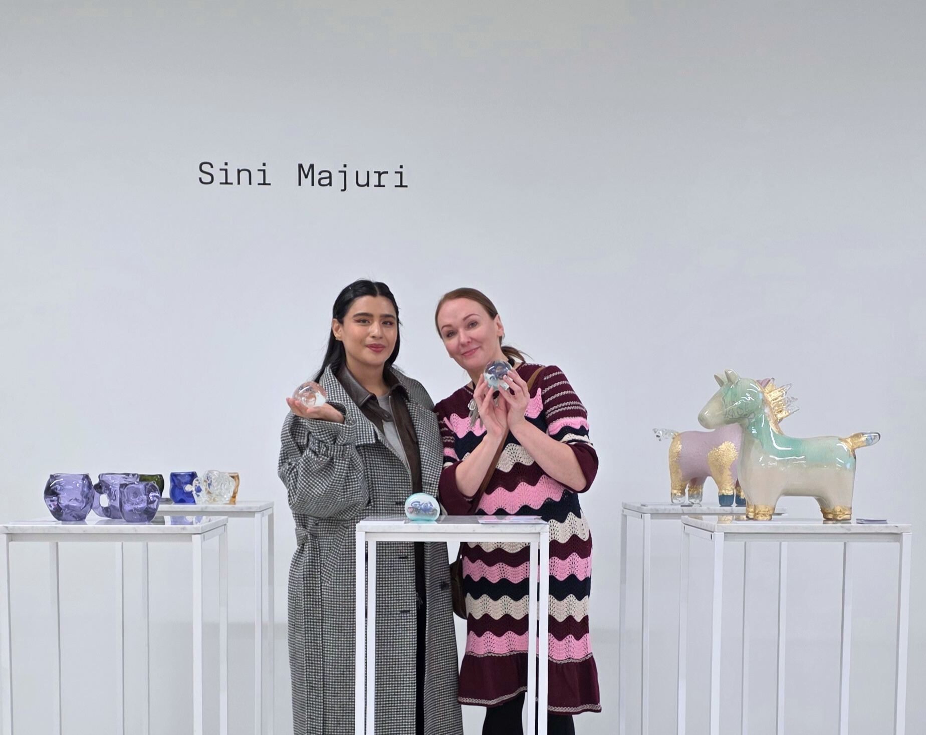 Näyttelytilassa oli muotiviikkojen ajan esillä lasisia kuksia sekä veistoksellisia hevosiani. Näyttelyn lisäksi järjestimme Heavy Glass Ritual tapahtuman Poet Conceptin galleriatilassa 28 helmikuuta, jossa sanomana oli, että läsnäolo on radikaali teko. Savolaiset shamaanit Teemu ja Kati Paananen täyttivät tilan hypnoottisella äänimaisemalla. Vieraat nostivat käsiinsä massiiviset, veistokselliset lasikuksat ja maistoivat Coolheadin suomalaista craft-salmiakkiolutta. Maku, paino, materia ja hetki sulautuivat yhdeksi kokonaisuudeksi.
