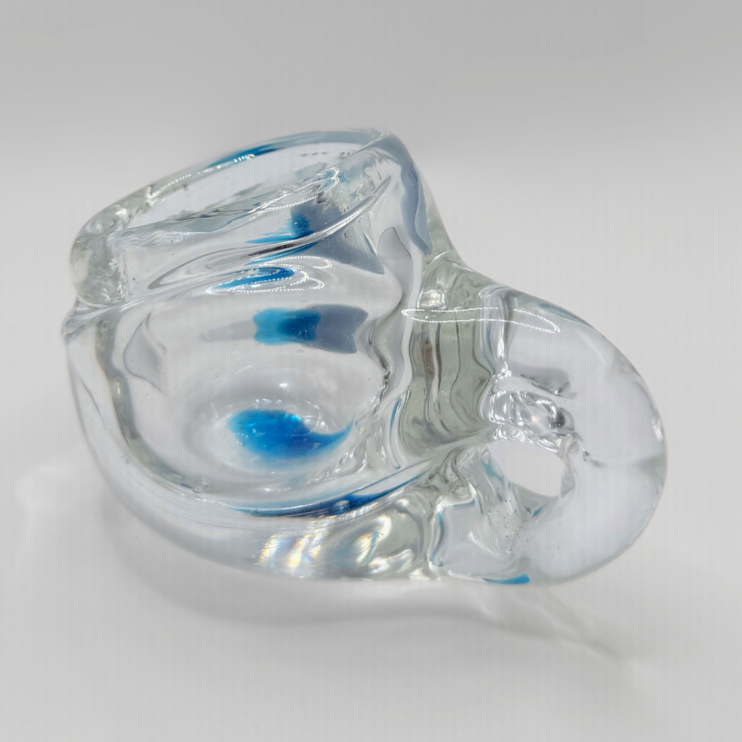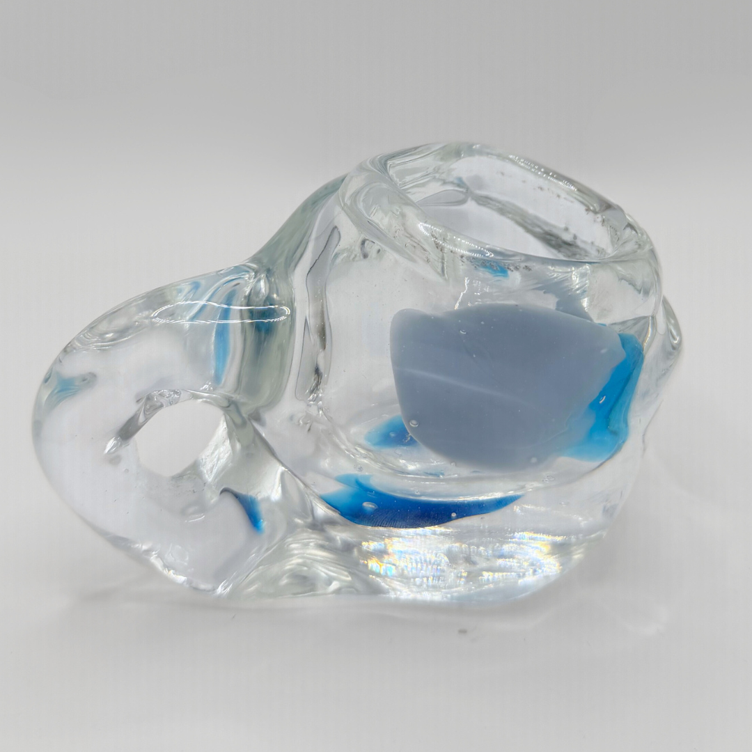 Kuksa Napero is light and lively, a small kuksa where blue glass echoes clear water and open skies. Its compact size feels approachable, yet its form carries quiet depth.