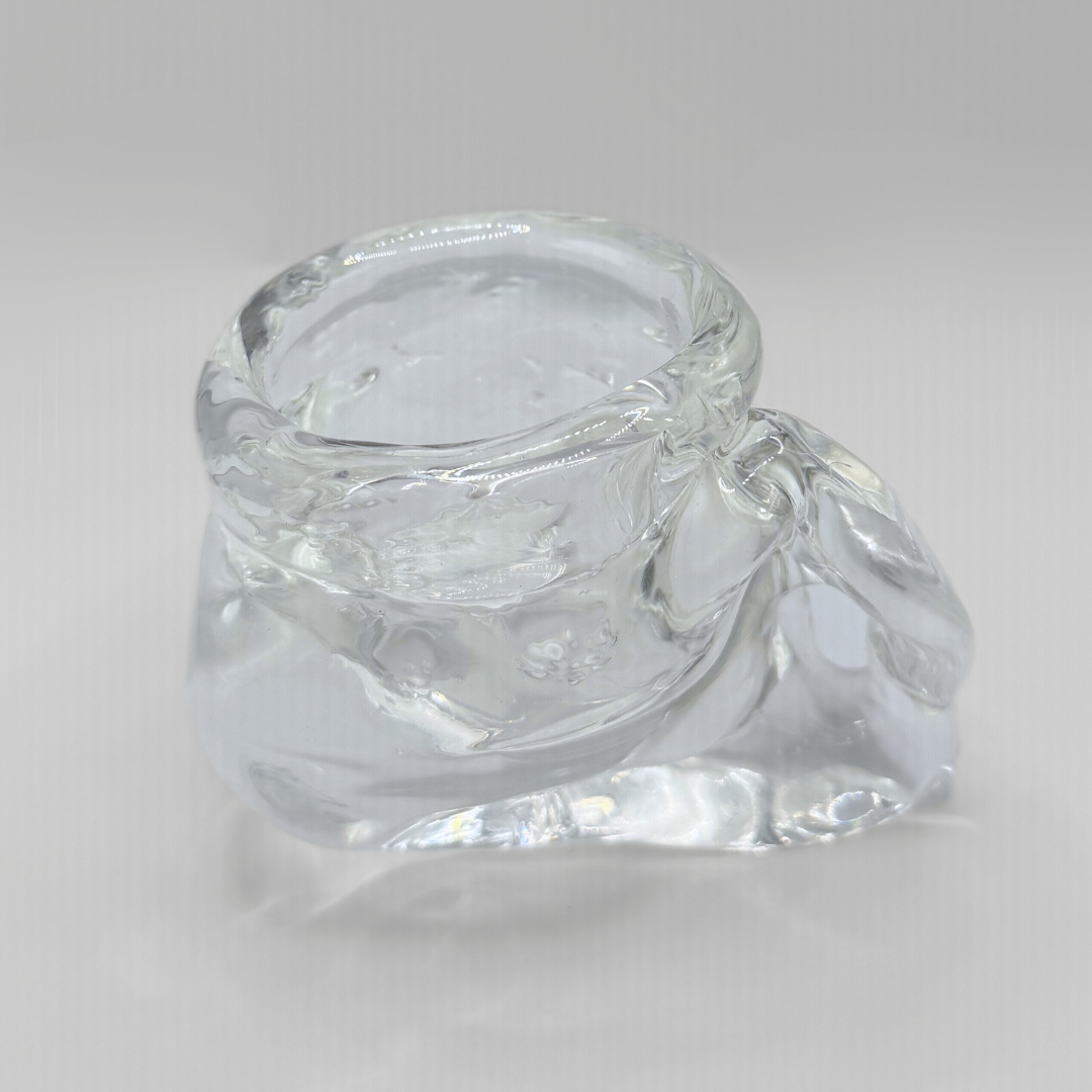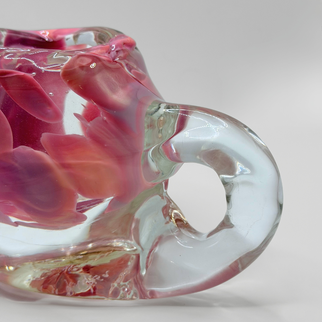 Kuksa Söpö lives up to its name, gentle, warm, and comforting. Its larger size gives weight and stability in the hands, while the soft pink glass glows quietly. Söpö lingers; it does not rush.
