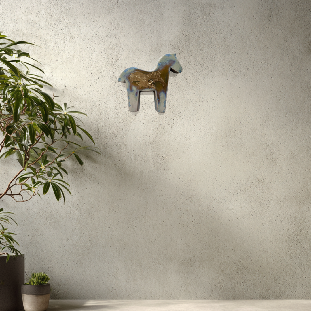 The Humma sculpture is a free spirit: it symbolizes unpredictability and acceptance, bringing a small touch of natural, untamed soulfulness into a space. Some pieces shimmer like morning dew, while others gallop in waves of color. Each Humma tells its own story, because life is not meant to be confined within narrow frames.