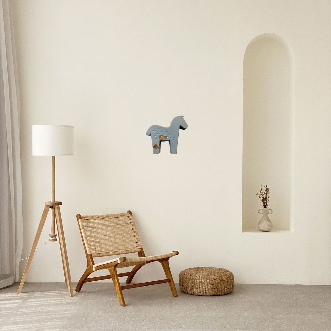 Humma Minut on elegantti ja hiljaisen pohdiskeleva seinäheppa, jossa sininen kidelasite yhdistyy hienovaraisiin kultakoristeisiin. Kiteet muodostavat mutkikkaita tähtikuvioita pinnalle, ja kultaukset tuovat teokseen lämpöä ja rauhallista ylellisyyttä.