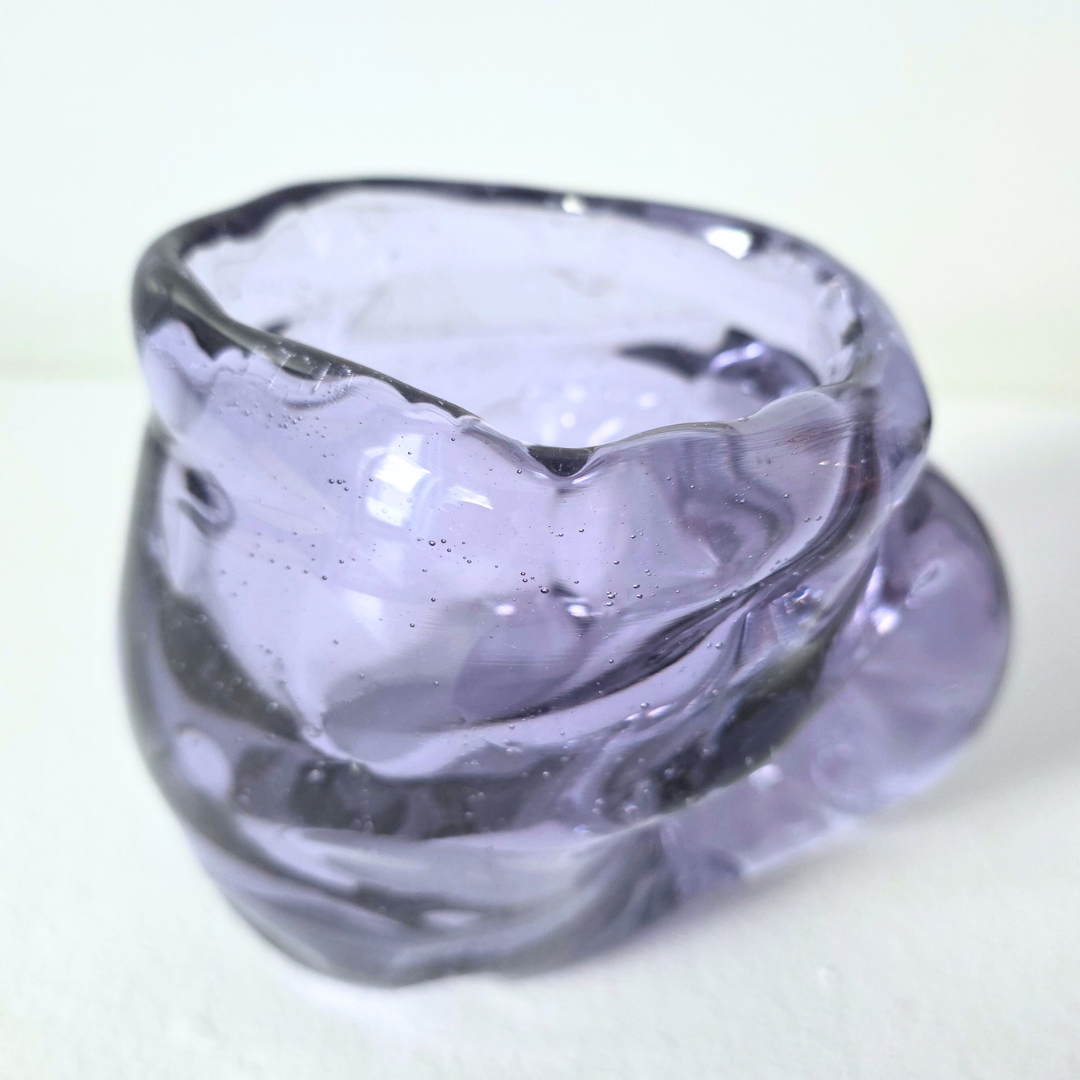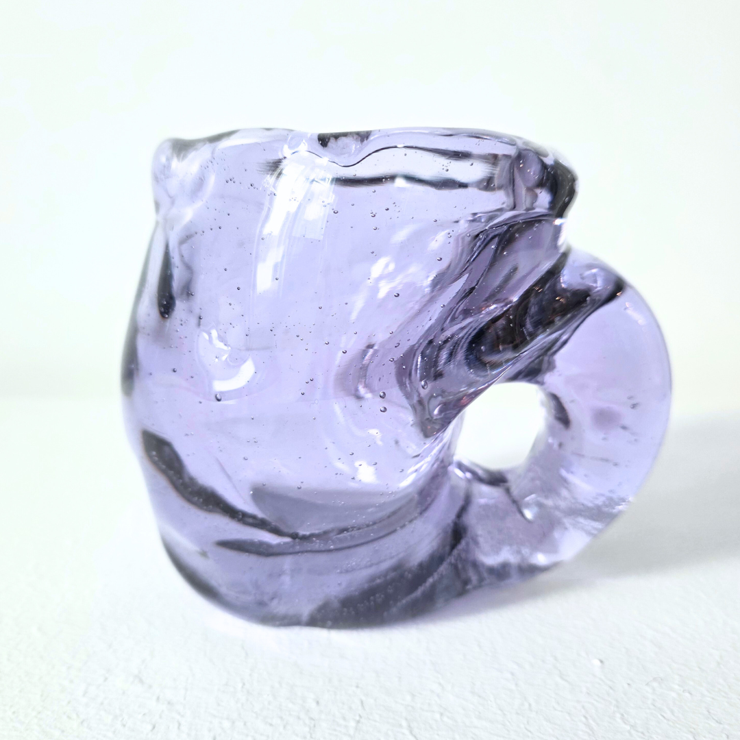 The work is signed and titled with an engraved inscription on the base. Hot beverages are not recommended, as hand-formed glass is sensitive to thermal shock. Vekkuli prefers cool drinks and unhurried moments.