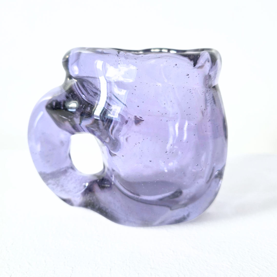 Vekkuli is a unique drinking sculpture blown from neodymium glass, a glass kuksa that is not a hurried sip but a considered moment.