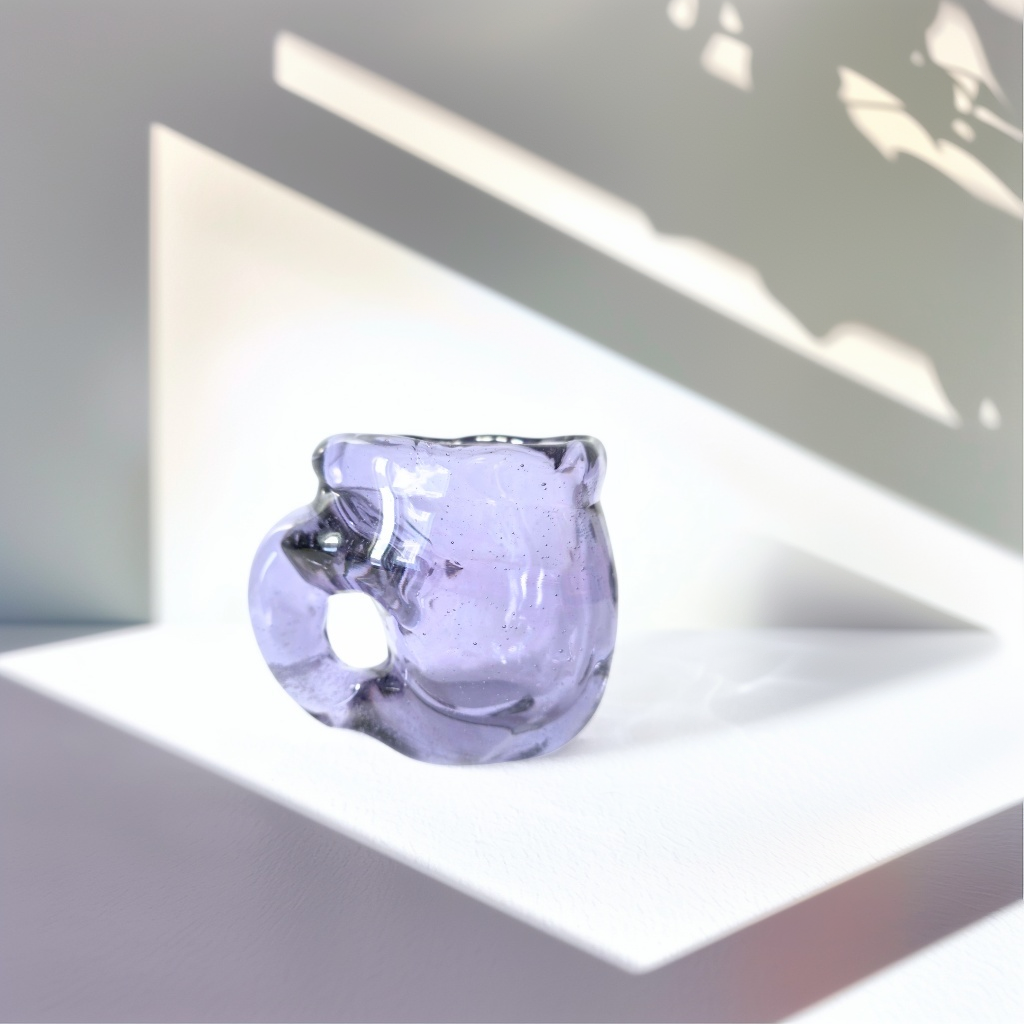 Neodymium glass turns the piece into a playful stage for light. Depending on the light source, the color shifts from cool violet to bluish tones, as if the object itself were deciding which mood to inhabit today.