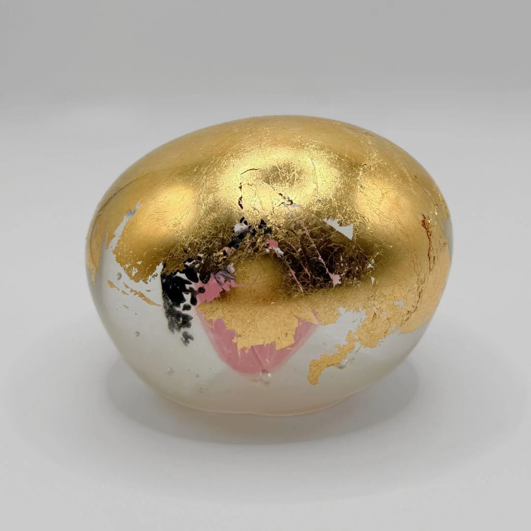 The little golden mischief Tepi is part of the Tyyppi glass sculpture series. Its surface is gilded, gleaming with warm metallic tones, but like all precious things, the gold is vulnerable and will show the marks of time. Beneath the shimmering exterior hides a feisty little Tepi, grinning and snarling, full of personality.