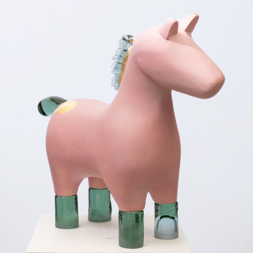 Trojan Horse Pink kantaa lämmintä sykettä sileän keramiikkakuorensa alla. Veistoksessa on lempeä, jopa intiimi tunnelma, se hehkuu ilman, että yrittää olla näyttävä. Pehmeän pinkki lasite muistuttaa auringonlaskun viimeisiä sävyjä hiljaisella seinällä.
